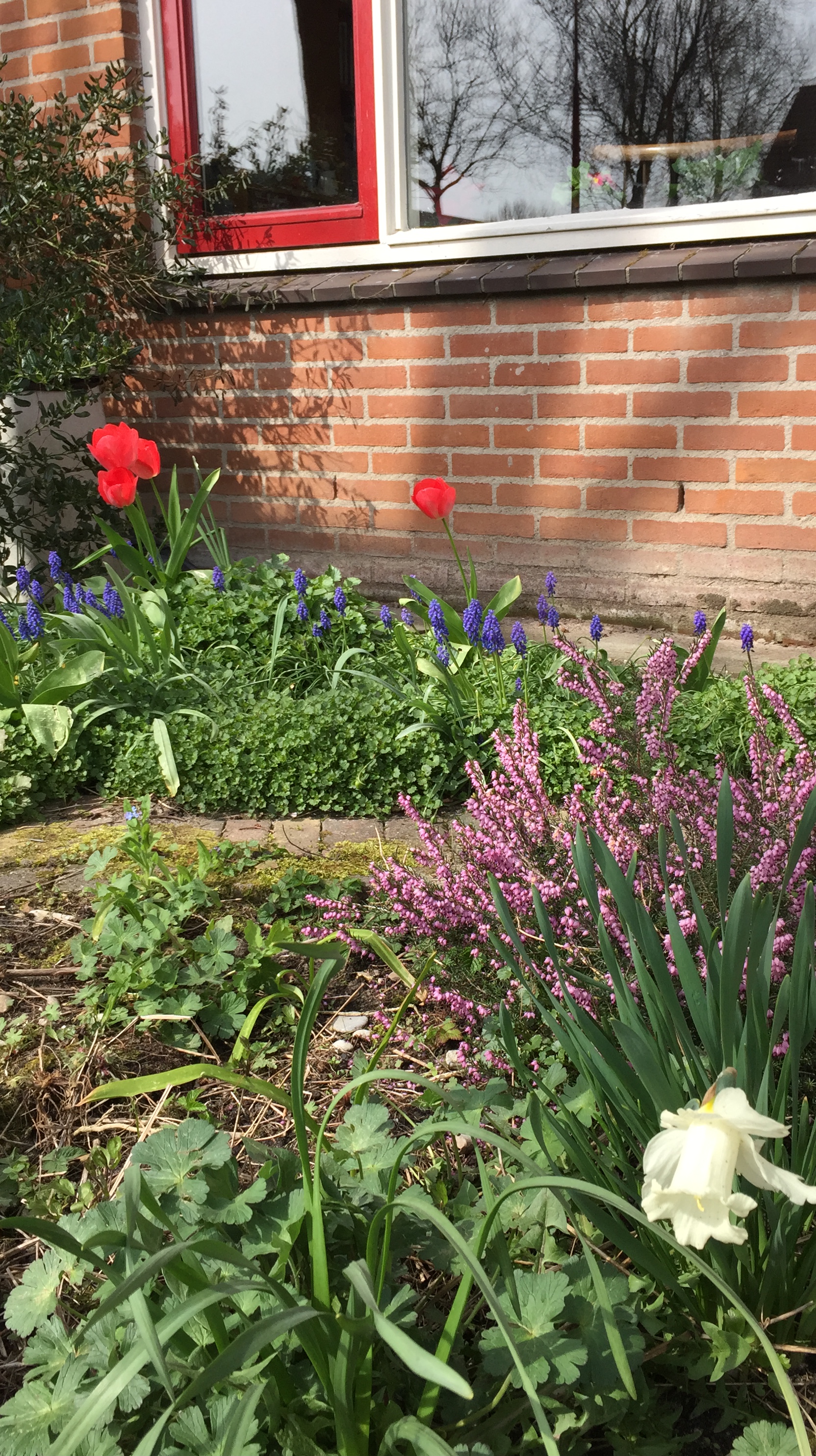 Overigens is er nu, 1 dag later, nog meer kleur: de vergeet-me-nietjes bloeien nu ook!